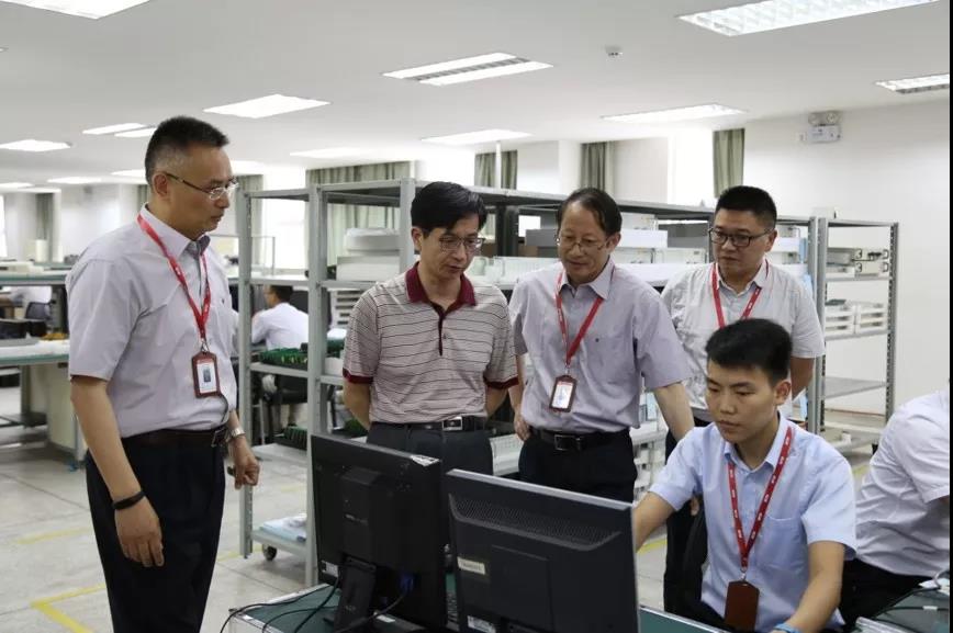 6月21日,崔維兵一行來到四川靈通,參觀了技術中心、無線通信部等部門的研發設施及設備,詳細詢問了四川靈通生產設備能力、人員配置等情況等。座談會上,四川靈通黨委書記、董事長羅江發代表公司就2018年年度工作目標及重點工作任務情況作了有關匯報。