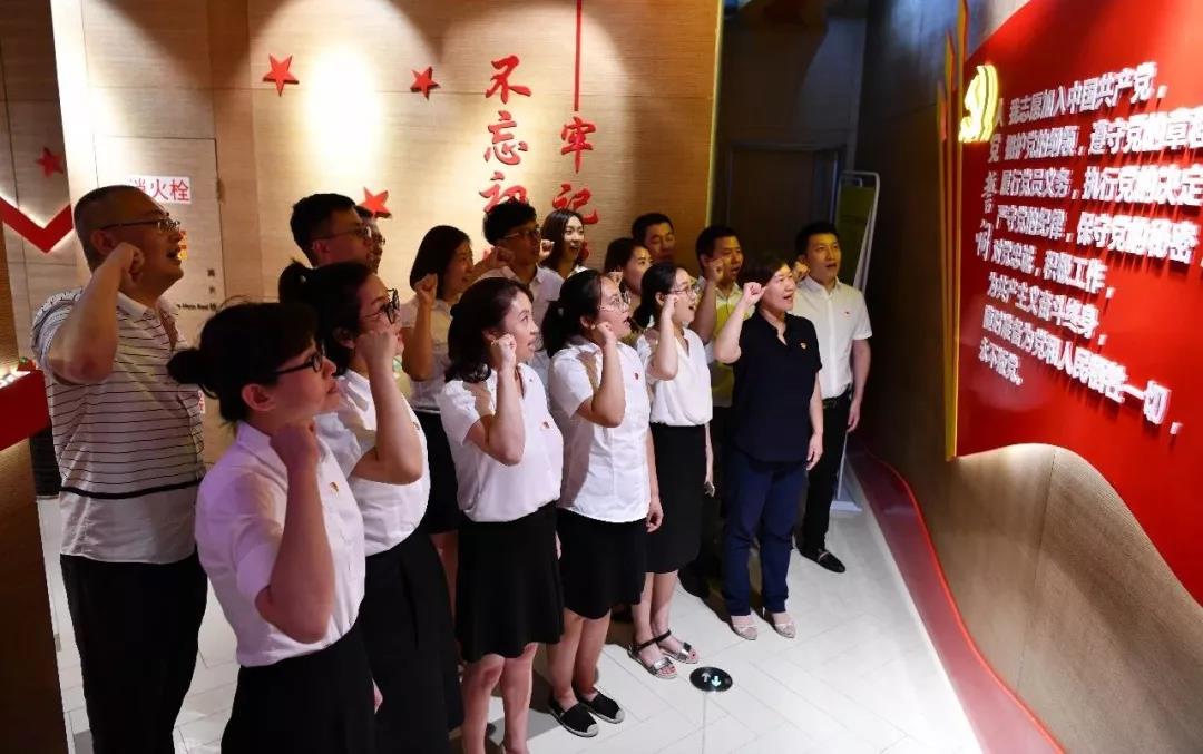 活動中,黨員們認真閱讀紅色經典書籍,重溫黨的光輝歷史,了解了共產主義起源和入黨誓詞內容的演變,學習了焦裕祿、郭明義等優秀共產黨員的先進事跡。其中紅色激情體驗室讓黨員們體驗到了先進的科技與輝煌黨史的有機結合,VR技術讓珍貴歷史鏡頭原聲再現,仿佛置身于那段激情燃燒的歲月,給人一種身臨其境的感覺。最后,黨員們在莊嚴的黨旗下重溫入黨誓詞并共同唱響了國際歌。